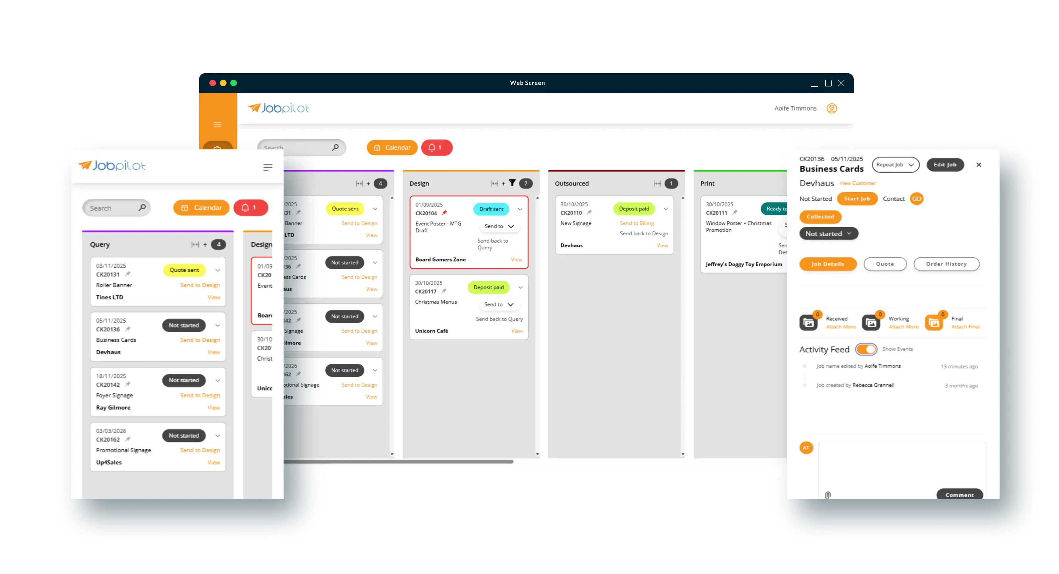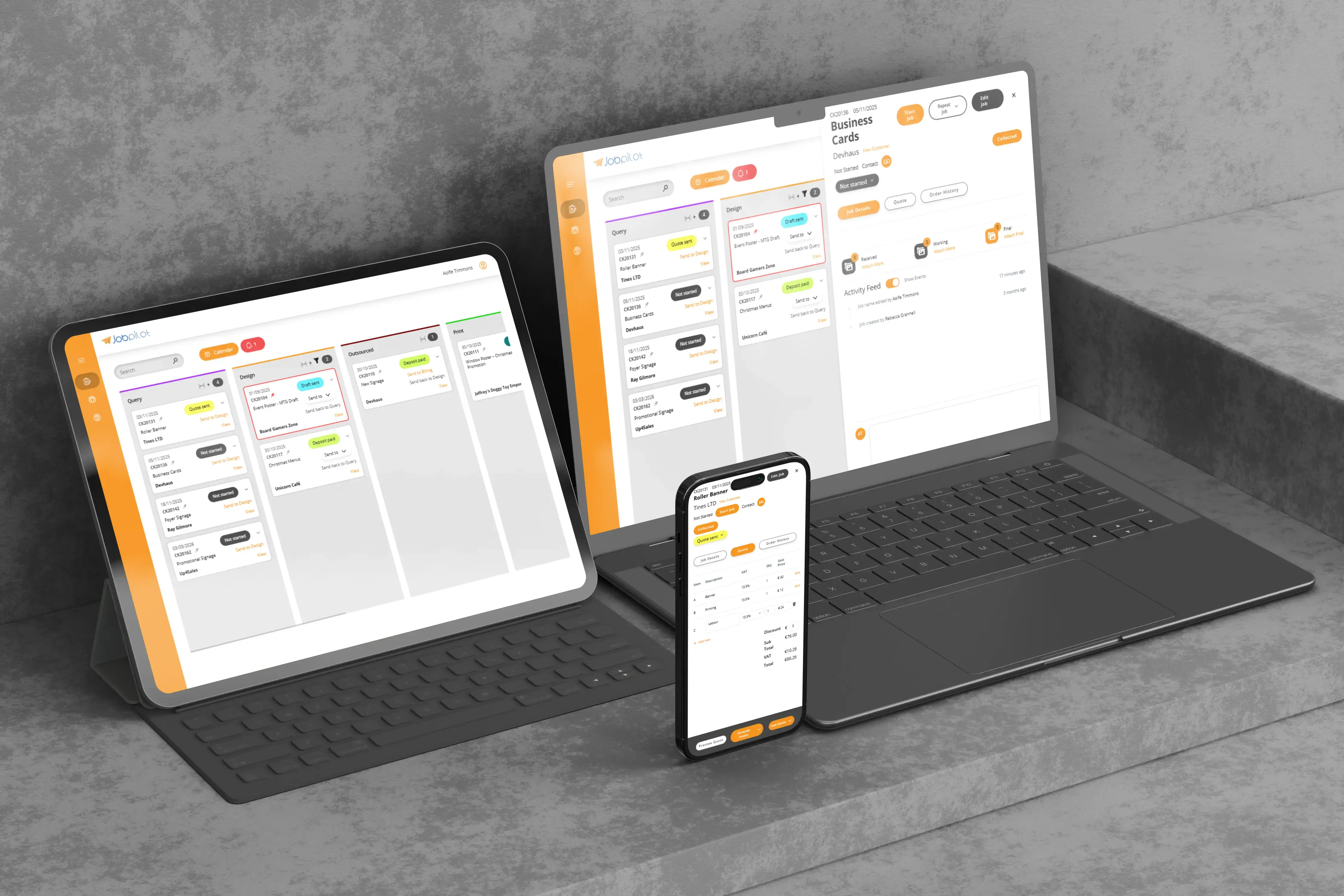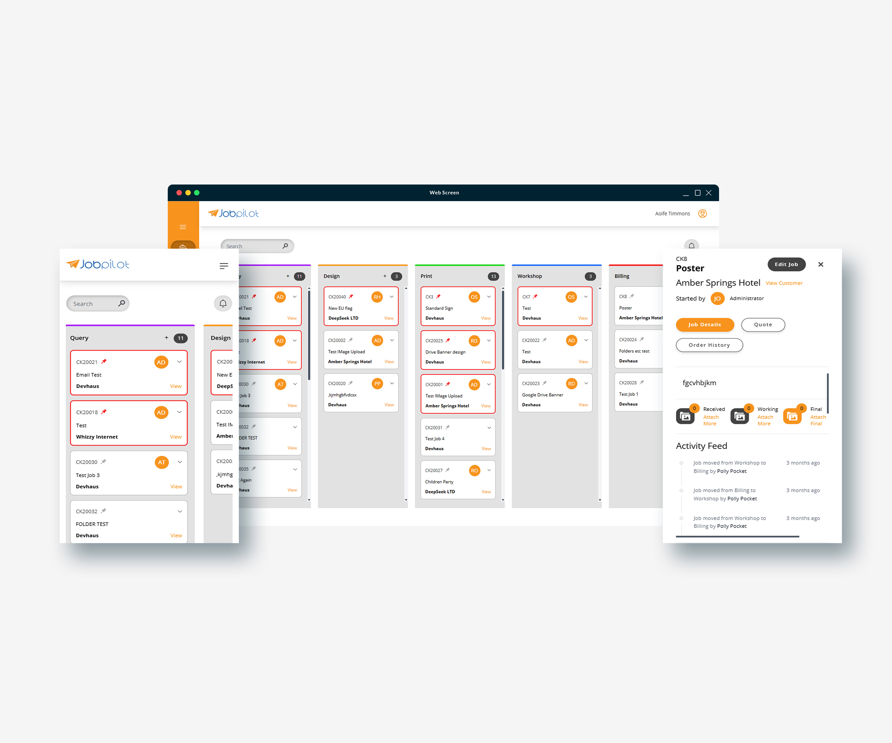 We built a custom job management application that digitises the entire CK Signs workflow from enquiry to invoice. The system tracks each job through every department - design, print, workshop, and billing - with real-time status updates visible to everyone. Key features include: