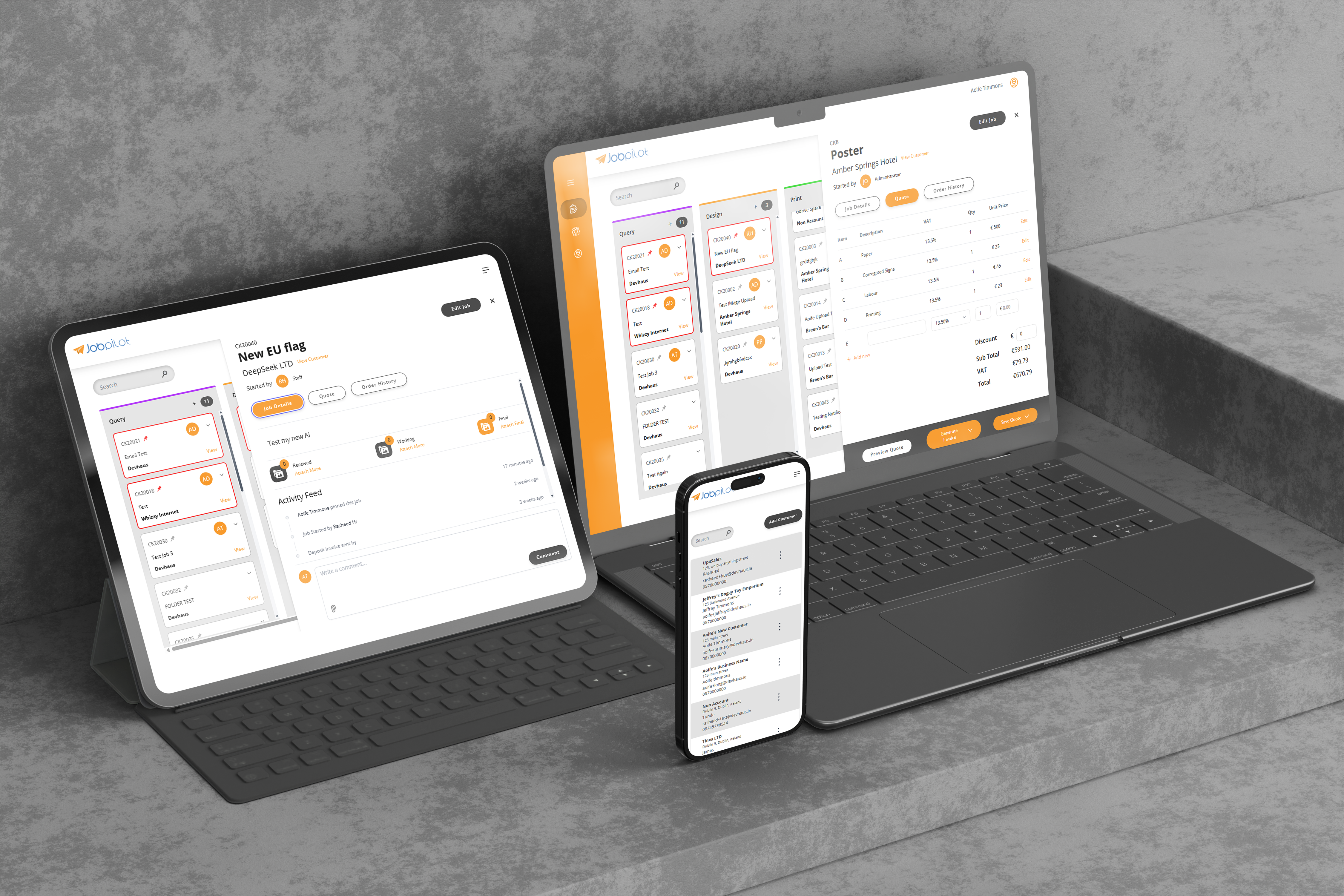 Customer and quote management integrated with job creation
